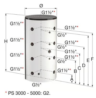 På PS 200 og 2.000 liter leveres med justerbare ben.Isolering (eksklusiv – kan bestilles separat. Se afsnittet ”Tilbehør for varmtvands- og bufferbeholdere”):Eksklusiv EPS isolering (brandklasse B1) med hvid (RAL 9010), hvid alu. (RAL 9006) polypropylen kappe.Isoleringskappen er ikke egnet til anvendelse i køleanlæg.