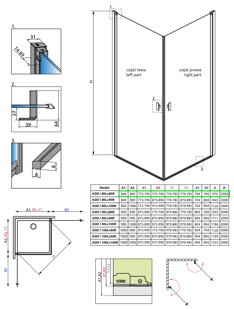 • Standard højde 2000 mm til overkant på glas